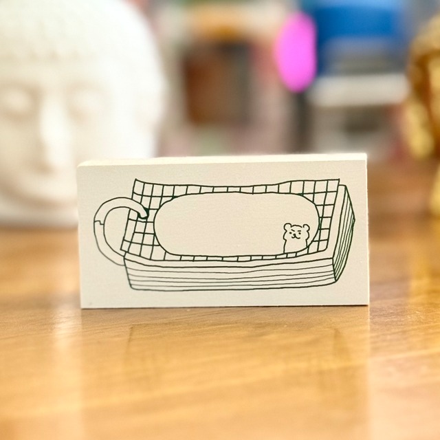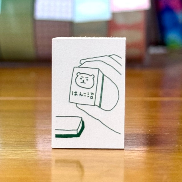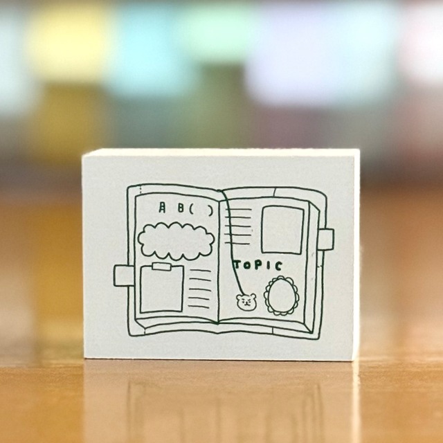 30mm×60mm ハチクマがひょっこり覗く単語帳のはんこ。 タイトルを書いたり宛名を書いたり。