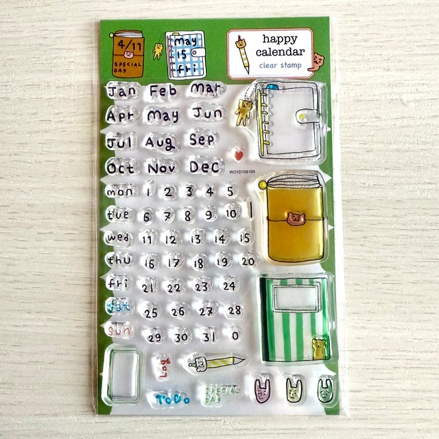Sakuralala×hachikahoコラボ クリアスタンプ第2弾!! 手帳デコに便利なクリアスタンプを作りました。 ハガキサイズのシートの中に重ね押しを楽しめるデザインをみっちり詰め込みました! 透明なので押す場所が見えて使いやすく、沢山のデザインが1シートになっているので保管場所も取りません。 手帳用クリアスタンプに実績があるSakuralalaさんにご協力頂き製作したクリアスタンプです。 第2弾は組み合わせて日めくりカレンダーのように押せるクリアスタンプです。 数字や曜日を日付の入っていない手帳に押したり、手帳フレームだけを押して中に文字を書き込んだりと、いろいろな楽しみ方ができます。 第1弾の「happy diary」と組み合わせて押しても可愛いです!