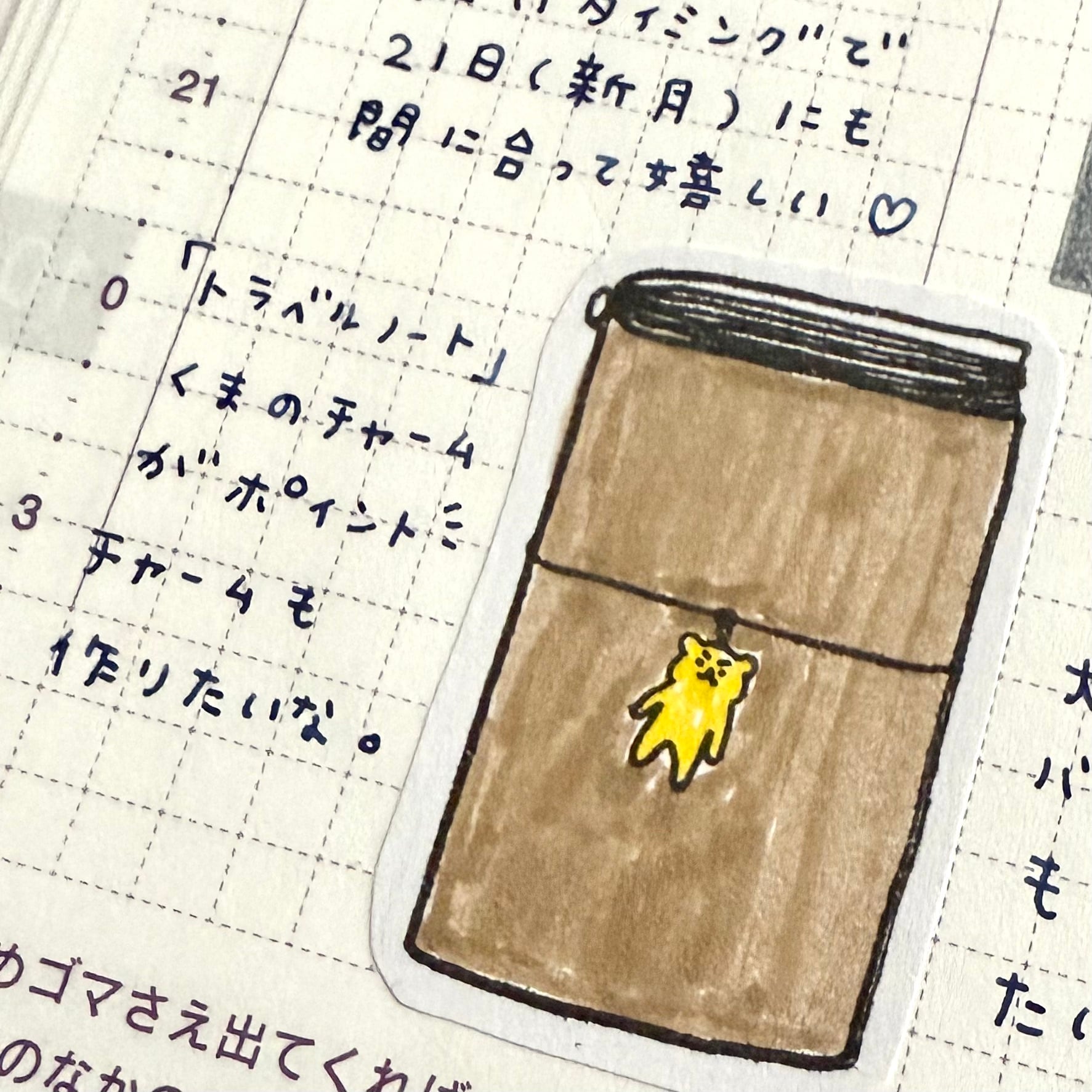 くまのチャームがポイントのトラベルノートのはんこ